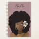 Ce design présente l'art numérique d'une beauté naturelle cheveux avec afro complet et fleur dans les cheveux. Vous pouvez customiser ce planificateur avec votre nom sur le devant. La citation "Elle croyait qu'elle pouvait le faire" est sur le dos.