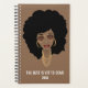 Le meilleur reste à venir pour la nouvelle année... planifier en conséquence. beauté afro-américaine avec cheveux naturels afro, accessoires or et lunettes de soleil sur un fond brun. Texte en or.