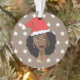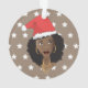 Célébrez la saison des Fêtes avec cette beauté naturelle et son chapeau de Père Noël festif sur sa pleine, fabuleuse 'pour. Natural Beauty a un noir, fraiche, des colliers superposés et des cerceaux d'or sur un arrière - plan marron aux étoiles blanches.