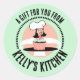 Femme pâtissier gâteau givré étiquette cadeau auto