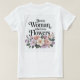 Ce t-shirt présente un design typographique décoratif avec du texte noir classique sur un arrière - plan blanc. Les mots Juste une femme qui aime les fleurs sont centrés. En dessous du texte se trouve un agencement fleuri décoratif aux couleurs pastel douces. Les fleurs comprennent des anémones blancs, des roses lavande et des pivoines rose pâle avec des feuilles et des tiges vert foncé. Le t-shirt est un T-shirt blanc basique pour femmes. Ce t-shirt serait un grand cadeau pour une Amour Plante, Dame Plante, Gardener ou les vacances de Jour des terres le 22 avril.