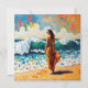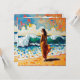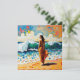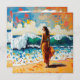 Carte blanche pour écrire des notes pour vous-même ou envoyer à un ami pour lui dire bonjour et garder le contact. Une belle illustration d'ai réalisée dans un style d'impasto peinture à l'huile. Une femme marchant sur la plage avec une mosaïque abstraite style coloré et vibrant.