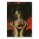 Une dame avec son visage dans les mains avec un arrière - plan rouge un tableau grungy généré par l'IA