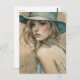 Un beau croquis vintage d'une femme blonde en bleu IA généré art