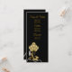 Elégant menu et programme noir et or avec de belles chaussures talon d'or, ballons et perles sur un choisir votre propre arrière - plan couleur. Le même design est à l'arrière. Ces programmes ou menus en noir et or sont facilement customisés avec le texte de votre choix à l'avant et à l'arrière dans le style de police que vous préférez.