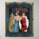 Illustration vintage de deux femmes des années 1940 habillées pour Noël avec un arbre dans l'arrière - plan