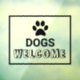 Autocollant transparent pour vitrine avec 'Chien Bienvenu'. Panneau avec lettres noires et empreinte de patte pour toute entreprise, restaurant, magasin, boutique, café, salon de coiffure, hôtel, boulangerie, etc. accueillant les animaux.