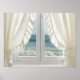 Rapprochez la nature de votre maison ou bureau ! Fenêtre blanche avec rideaux rétro, donnant sur la mer. Toutes les tailles disponibles, cliquez sur Customiser pour choisir une taille plus grande, n'hésitez pas à ajouter du texte et des bordures ou même un cadre.