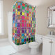 Fenêtre en verre tendu bitume motif multicolore avec rideau de douche en métal moche