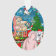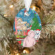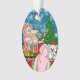 Joli ornement de Noël avec petite fille dessinée à la main regardant à travers la vitrine de magasin qui est décoré de façon festive.