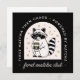 Drôle raccoon amoureux de feral matcha club alimenté par thé vert sarcastique citations d'abord matcha puis chaos. Cool étrange animal sauvage rétro vintage japonais esthétique cadeau fille décoration chambre noire petite carte imprimé.