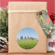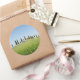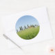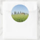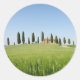 Autocollant photo rond avec une ferme avec cyprès et brassant des grains de blé au printemps dans la vallée du Val d’Orcia en Toscane, Italie.