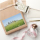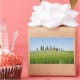 Autocollant photo rectangulaire avec une ferme avec cyprès et brassant des grains de blé au printemps dans la vallée du Val d’Orcia en Toscane, Italie.