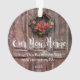 Rustic Farmhouse Door New Home Custom Christmas Ornament - une porte de campagne rustique et en détresse avec une simple couronne de Noël. L'ornement est customisé avec votre nouvelle adresse et année. Le design est de part et d'autre. Fait un cadeau agréable et réfléchi pour n'importe quel nouveau propriétaire.