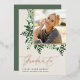 Élégant faire-part de graduation photo, avec une photo carré agrémentée d'un feuillage vert aquarelle et de fleurs blanches, et parée de feuille d'or. "Graduate" apparaît ci-dessous, ainsi que le nom de votre diplômé et l'école ou le collège. Ajoutez un message personnel à l'arrière, ainsi qu'une photo supplémentaire.