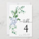 Ces numéros de tableau sont dotés d'une conception hydrangée bleu aquarelle avec une police de caractères manuscrite. L'en-tête de script est une image qui ne peut pas être modifiée. Tous les autres textes sont entièrement modifiables. Pour une personnalisation plus avancée de cette conception, il suffit de cliquer sur le bouton "Customiser" ci-dessus. La conception est recto verso et permet de remplir automatiquement le texte de l'avant vers l'arrière. Pour créer d'autres numéros, vous devez créer chaque numéro de table séparément et acheter une seule carte.