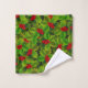 La serviette colorée montre des feuilles verts et des baies sèches rouges comme arrière - plan ou motif. Joli design saisonnier pour les vacances de Noël en décembre. Faites un cadeau pratique et utile, ou égayez votre propre maison.