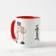 Ajoutez une touche de Whimsy et de Fun à vos matins avec cette adorable Mug Snowman ! Cette Charming Christmas Mug présente un bonhomme de neige qui est trop mignon! Il tient un Père Noël Mug plein à flot avec de la crème fouettée. Il tient aussi un biscuit Homme en pain d'épices. Vous pouvez facilement personnaliser cette Mug Snowman en ajoutant votre propre nom! Personnalisez cette Mug Festive de Noël à votre coeur contenu!