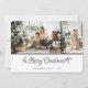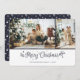 Mignonne photo bleue Joyeuse carte de Noël avec salutation de calligraphie sur le devant et un motif étoilé à l'arrière. Personnalisez facilement cette carte de vacances photo moderne avec vos photos, votre nom de famille et l'année.