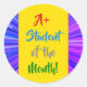 Ce design festif et encourageant affiche le message "A+ Student of the Month!". Un autocollant comme celui-ci peut être utilisé pour motiver un étudiant. [~Z0000317]