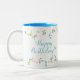Celebrate that Coffee Lover's Birthday with a fun mug edged with colorful confetti with "Happy Birthday" in script on both sides of mug! Several mug styles; shown on my favorite: the inside color.