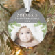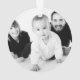 Festive Cute Baby`s First Christmas 2 Photo Ornament avec des branches d'arbres de Noël et des flocons de neige. Personnalisez l'ornement avec 2 photos de votre bébé sur le devant et le dos, le nom et l'année de naissance. Un grand souvenir de vacances pour vous ou un cadeau pour votre famille et vos amis.