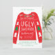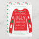 Un pull moche avec une touche de moche conception en rouge et vert traditionnel avec arbres de noël et buse pour votre fête de vacances.