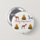 Joyeux thème de Noël avec des arbres de vacances dorés et des cerfs avec des motifs mandala. Drôle, badge festif coloré. Facile à personnaliser avec votre propre texte.