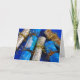 Festive noël poppers sur la carte de voeux papier arrière - plan bleu.
