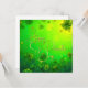 Une belle carte de voeux St. Patrick’s Day avec un arrière - plan vert luxuriant rempli de shamrocks dynamiques de différentes tailles. L’écriture dorée et élégante, "Bonne Saint Patrick" ajoute une touche de chaleur et de festivité. Une lumière douce et brillante renforce l'atmosphère joyeuse, symbolisant la chance et la célébration.