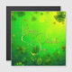 Une belle carte de voeux St. Patrick’s Day avec un arrière - plan vert luxuriant rempli de shamrocks dynamiques de différentes tailles. L’écriture dorée et élégante, "Bonne Saint Patrick" ajoute une touche de chaleur et de festivité. Une lumière douce et brillante renforce l'atmosphère joyeuse, symbolisant la chance et la célébration.