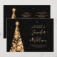 Élégant et festif modèle du programme de mariage d'or de l'arbre de Noël, avec programme de fête et texte du menu, feux de parties scintillant Arbre de Noël et script de typographie moderne.