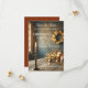 Une carte Save the Date festive pour une fête de Noël ou de vacances, avec une table rustique avec des bougies et une couronne de Noël aux lumières étincelantes. Beau pour une fête familiale ou d'entreprise ou pour une maison ouverte.