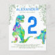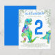 Ce T. Rex coloré rugissant et ce stégosaure multicolore mignon invitent les fans de dinosaures à une fête d'anniversaire préhistorique dans la jungle pour les 2 ans des amoureux des dinosaures. Personnalisez cette invitation de Tyrannosaure et de stégosaure en ajoutant le nom du garçon ou de la fille qui fête son anniversaire, le numéro de l'anniversaire et les détails de la fête et vous êtes prêt pour une fête d'anniversaire sur le thème des dinosaures jurassiques audacieux et bleus, remplie de plaisir. Toutes les espèces de dinosaures sont les bienvenues. Illustrations de dinosaures de l'ère jurassique préhistorique, œuvre originale de l'artiste Catherine Sweetman.