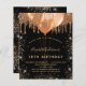 Pour une fête d'anniversaire élégante de 18 ans (ou tout âge). Un fond noir élégant. Décoré de fausses paillettes dorées foncées et de ballons. Personnalisez et ajoutez un nom, un âge et des détails de fête. Le nom est écrit avec un style de lettrage manuscrit