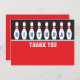 carte de remerciements plat de Bowling (4,5 x 6,25 po) avec une rangée de quilles et le mot "Anniversaire" épelé sur les pins. Correspond à la même invitation de fête d'anniversaire de style. Pour obtenir de l'aide ou des demandes personnalisées, veuillez utiliser le lien de contact du magasin.