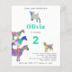 Une collection de chèvres colorées et psychédéliques en rose, violet, bleu, orange, jaune et aqua vibrant avec chèvre naine, bébé chèvre et chèvres debout sur des chèvres. Une invitation personnalisable pour un 2ème anniversaire multicolore mignonne à n'importe quel âge. Cette invitation de fête d'animaux de ferme amusante est facile à personnaliser pour créer une invitation de fête unique adaptée aux enfants et aux adultes amateurs de chèvres. Œuvre originale de l'artiste Catherine Sweetman