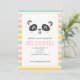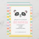Invitation de fête d'anniversaire pour enfants panda multicolore et brillant. Design de fond de bande graphique, la couleur peut être changée. Partie d'une collection.
