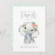 Aquarelle éléphant petite fille invitation fête d'anniversaire. Avec délicats détails de pois vert et blanc. Partie d'une collection.