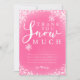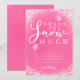 Jolie carte de remerciement modèle de fête d'anniversaire sur le thème de la neige en hiver en rose avec une neige blanche brillante et des flocons de neige avec un texte de typographie qui dit "merci beaucoup pour la neige". Le message éditable remercie les invités d'être venus à la fête et pour le cadeau. Idéal pour le 1er anniversaire d'une fille pendant la saison de Noël.