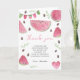 Invitation à la fête d'anniversaire des 1 an de fille rose mignonne et adorable pastèque. Le design présente des pastèques aquarelles, des drapeaux de vacances sur le thème de la pastèque, un cœur de pastèque, des graines de pastèque, "une pastèque parmi des millions !" et une tranche de pastèque souriante aquarelle. Notre petite fille est une pastèque parmi des millions !