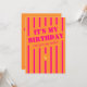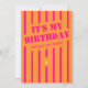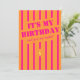 Une superbe carte minimaliste d'invitation à l'anniversaire orange ornée de rayures roses chaudes et d'une bougie. Toutes les phrases de texte peuvent être customisées.