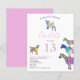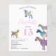 Pour la fille qui aime les animaux, célébrez avec ces chèvres colorées et mignonnes dans des aquarelles vibrantes rose, violet, bleu, orange, jaune et aqua. Une invitation d'anniversaire pour une fête de 13 ans avec des animaux de ferme mignons avec des bébés chèvres et des chèvres debout sur des chèvres. Cette invitation de fête amusante est facile à personnaliser pour créer une invitation unique adaptée aux enfants et aux adultes amateurs de chèvres. Illustrations originales de chèvres psychédéliques et colorées par l'artiste Catherine Sweetman.