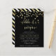 Carton d'invitation pour une fête d'anniversaire surprise "Budget Gold Confetti Surprise" par Eugene Designs. Envoyez ces invitations élégantes noires et dorées et commencez votre fête surprise avec un message moderne. Sur le devant, dans un style manuscrit élégant, les mots "chut... c'est une surprise" sont découpés numériquement en feuille d'or. Au verso, il y a des bandes diagonales élégantes dans les mêmes couleurs brun doré que les confettis à pois sur le devant. Les polices sérifées noires et blanches communiquent les détails de votre fête surprise avec une clarté maximale. Faisant partie de la sélection budget ici sur Zazzle, ces invitations ne sont pas livrées avec des enveloppes et ne rentrent pas parfaitement dans une enveloppe de taille standard. La taille la plus proche est A6, mais il y aura un espace d'environ un demi-pouce. Si cela ne vous dérange pas, vous pouvez utiliser des enveloppes A6 largement disponibles. Sinon, ce design peut être transféré dans un format standard 5x7 (qui est livré avec des enveloppes) en utilisant l'outil de transfert de design. À titre indicatif, à la date de rédaction (janvier 2021), 100 invitations budget (y compris une remise sur volume) coûteraient environ 39 $, tandis que 100 invitations standard 5x7 avec enveloppes