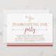 Parfaitement charmant dans les nuances d'automne de grenat et de citrouille, notre soirée Thanksgiving Eve invite les invitations amis et la famille à partager quelques petites bouchées, cocktails et vin avec vous avant la journée Thanksgiving. Le design comprend une illustration de glacier et de feuilles en haut avec un mélange chic de typographie de bloc et de script et une bordure de fond rayée en rouge grenat riche.