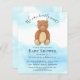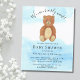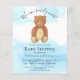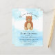 Cette invitation pour une fête de bébé de couple à petit budget est décorée d'un ours en peluche aquarelle mignon sur un fond de ciel et les mots "nous pouvons à peine attendre !"