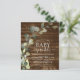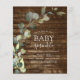 Cartes d'invitation pour une fête de bébé garçon ou bébé fille à petit budget avec eucalyptus, succulente, aquarelle botanique printanière de style neutre sur fond en bois rustique - comprend une typographie élégante et moderne avec des feuilles botaniques et de la verdure pour la célébration de la future maman.