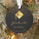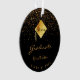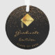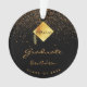Pour une célébration de fin d'études moderne et tendance. Un fond noir chic avec des confettis dorés. Le texte : Diplômé est écrit avec un grand style de lettrage manuscrit, lettres dorées. Modèle pour un nom et une année. Décoré d'un décor de casquette dorée fausse abstraite moderne, avec un pompon. Pour lui et pour elle. Parfait comme cadeau, souvenir ou décoration de fête.