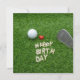 Fête de golf avec amour et balle de golf & Sand wedge sur la carte d'anniversaire d'herbe verte