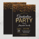 Fête de graduation Carte d'invitation à la Parties scintillant noire et d'or. Parties scintillant d'or Confetti. Grandes taches noires et blanches. Numérique imprimable.
